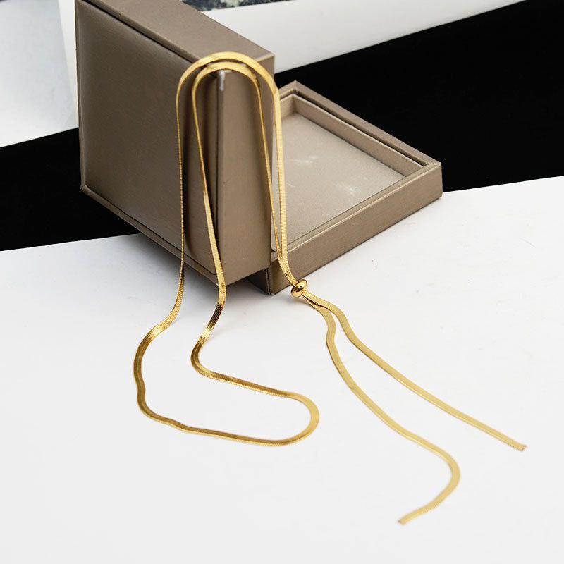 + Free ShippingElegant long stainless steel necklace for versatile styling.